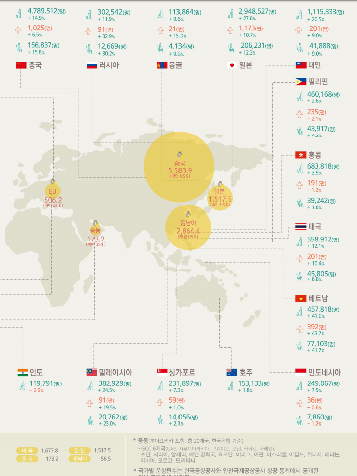 평창동계올림픽 관련 방문객도 포함됐을듯.